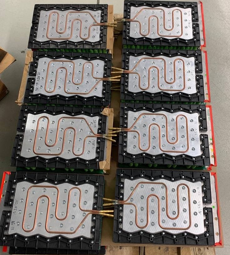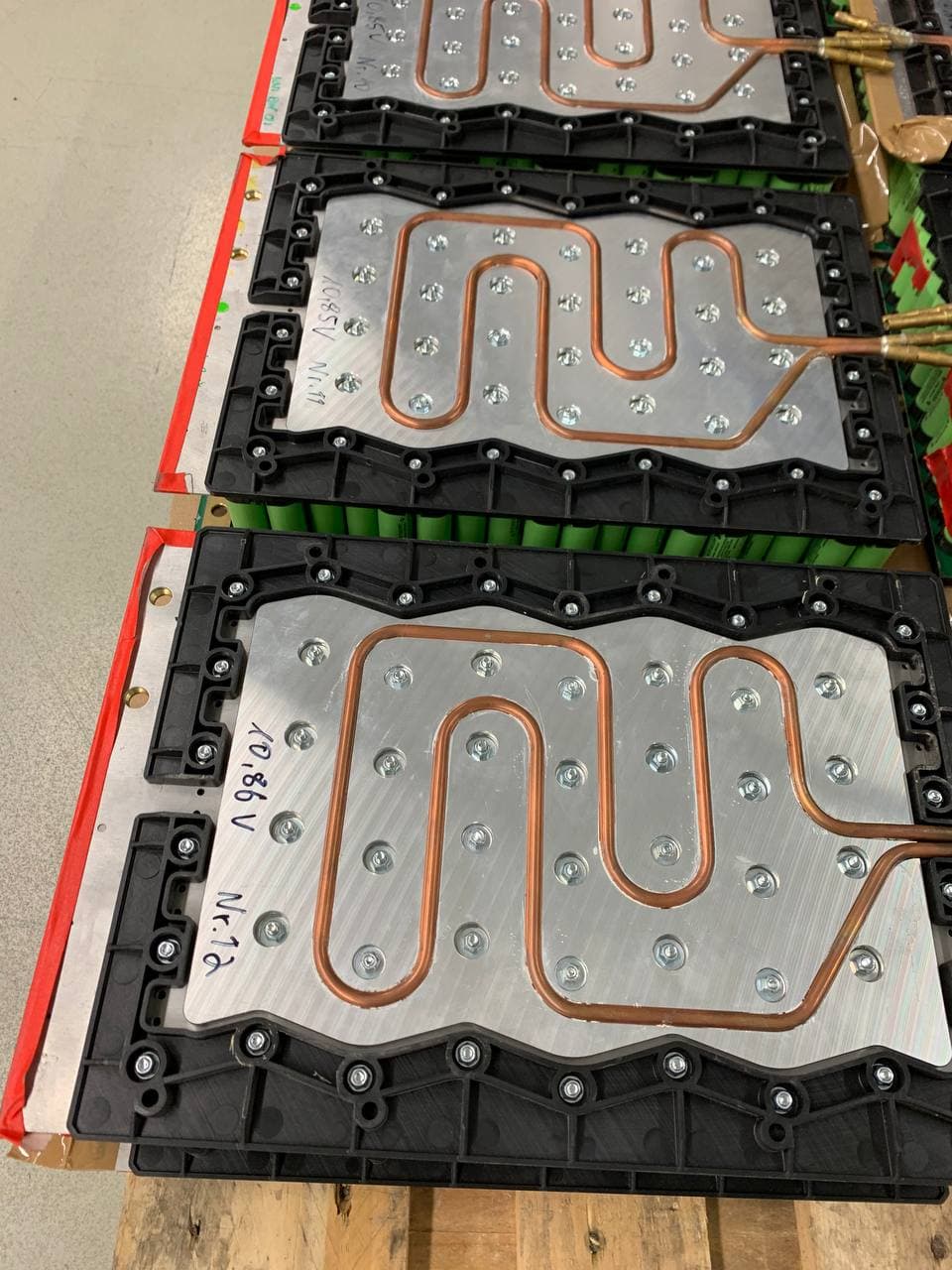 Hallo zusammen, sorry für die lange Pause. Anbei noch ein paar Informationen zu den Modulen und bessere Bilder. Wenn ihr noch Interesse habt oder Fragen schreibt mit gerne eine PN. Konfiguration: 72S3P, Panasonic NCR18650PF, Zyklenzahl: <10, trockene und kühle Lagerung. An die Module kann ein externes BMS angeschlossen werden, DSUB-Stecker mit Spannungsabgriffen und einem Temperatursensor je Modul sind vorhanden. Produktionsdatum 2015. Flüssigkühlung kann angeschlossen werden. Kein späterer Support vom Hersteller, da für Forschungsprojekt aufgebaut worden. 1 Modul ist leicht verschmutzt und bei einem ist die Platine verbogen. Es sind insgesamt 16 Module. Für die intakten Module würde ich 300 € VB ansetzen, für das verschmutzte Modul und das Modul mit der verbogenen Platine 150 € VB.