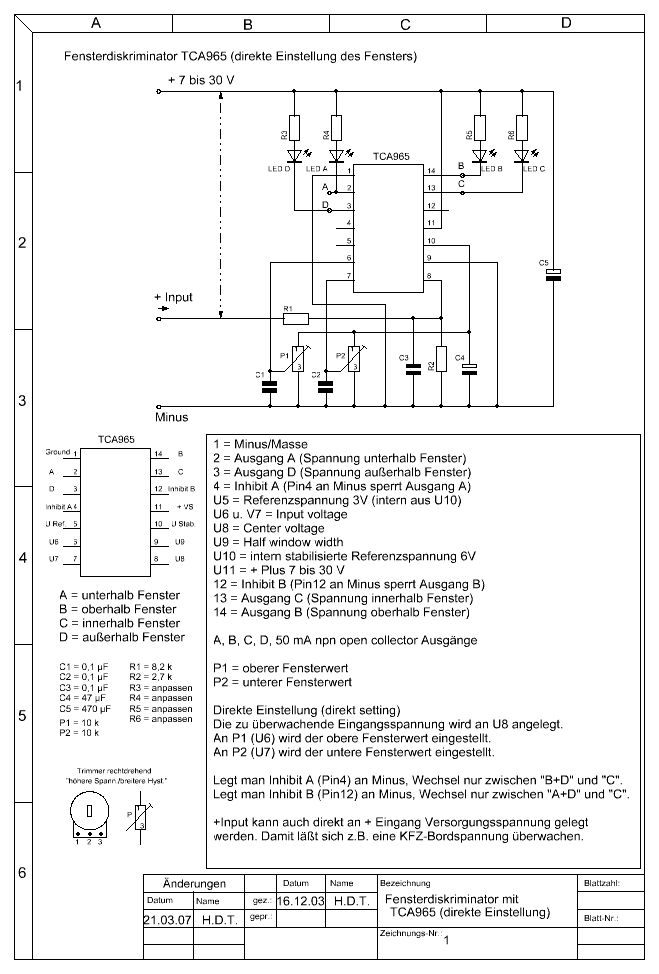 Die vier Ausgänge des TCA965 Fensterdiskriminators sind sogar mit je