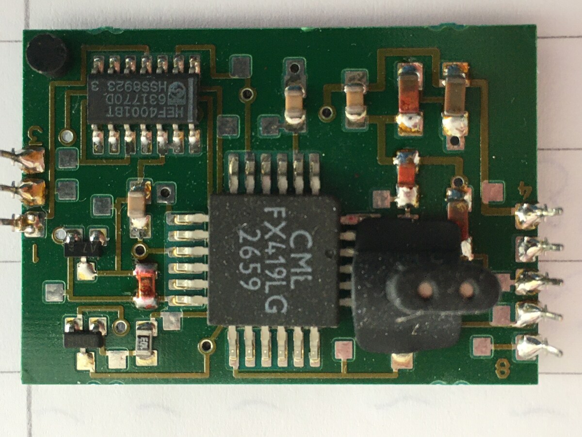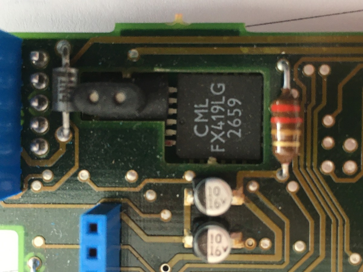 Ich habe jetzt mal die Platine etwas genauer untersucht: es gibt einen weissblechgekapselten Bereich auf der Bauteilseite, der für mich nicht zugänglich ist. Die Unterseite verrät auch nicht welche Funktion sich hier verbirgt. Desweiteren gibt es eine Aufsteckplatine, deren Funktion mir nicht klar ist, aber aufgrund des Chips CML FX419LG Teil eines 1200Bd-FSK-Modems zu sein scheint. Meine Vermutung: hiermit werden codierte Telegramme z.B. 5 stellig zur Freischaltung der empfängerseitigen Rauschsperre über den NF-Kanal verschickt. Vielleicht kann das jemand mit mehr Hintergrundwissen/Unterlagen bestätigen?