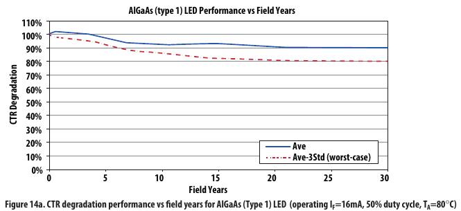 Vor langer Zeit haben wir uns eine Alterung der Optokoppler im Backofen geleistet und haben anschließend die noch lebenden, aber "zu langsamen" Typen aussortiert. Das hat ca. 30 "Schlechte" auf 100 gegeben. Konnte man bei den 100ter-Preisen akzeptieren. Zumindest waren entsprechend "schnellere" Typen damals deutlich teurer und den Funktionstest hätten wir sowieso machen müssen. Der Backofen wurde natürlich nicht zum Backen verwendet... Gruß Rainer