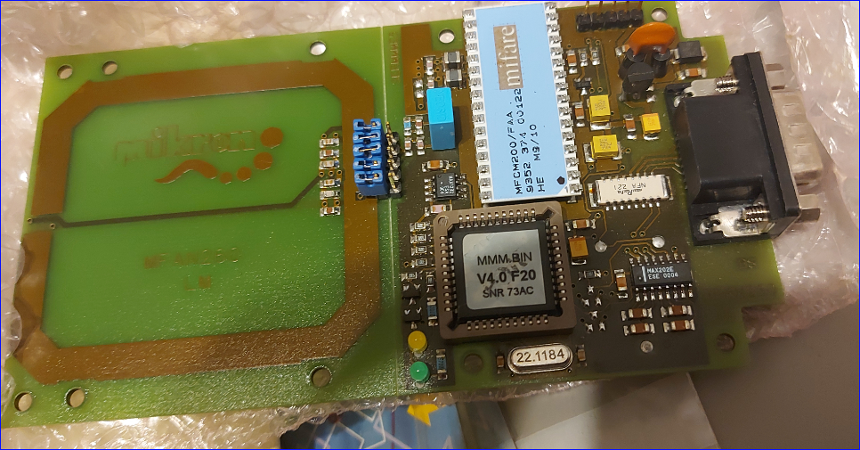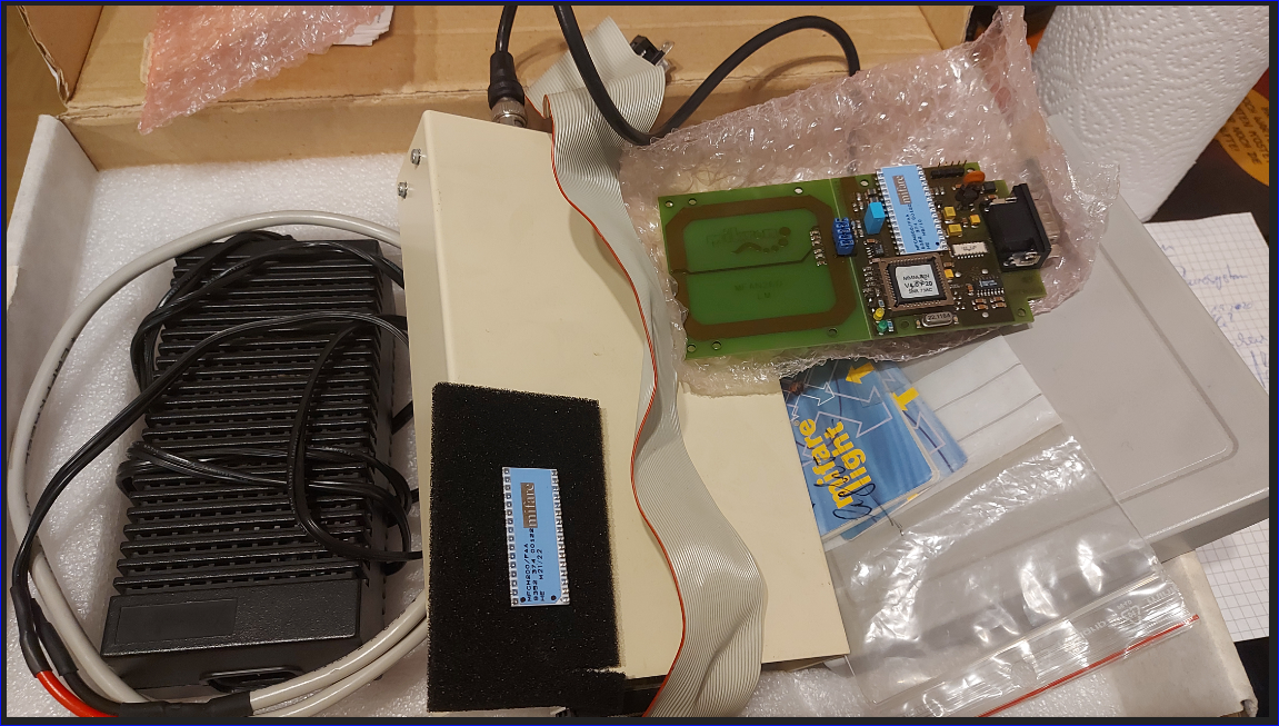 Hallo, Verkaufe relativ altes RFID Mifare/ Mikron Eval Kit (ca.1998) Philips Mifare MF EV500. Doku pdf Anhang... (VB) 20€ + 7€ Verpackung/Versand in D (Ist Schwer!) (am besten PayPal) Bei Fragen oder weiteren Infos/ Bilder bitte PM. mfg Roger