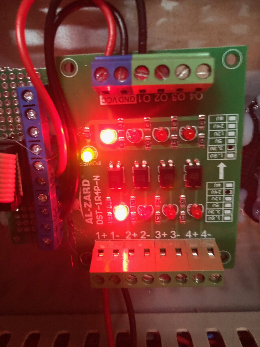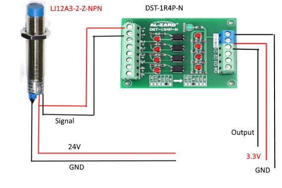 Hallo, ich hab mir das Optokoppler Board DST-1R4P-N https://www.amazon.de/gp/product/B07Y8L48P7/ref=ppx_yo_dt_b_asin_title_o03_s00?ie=UTF8&psc=1 gekauft um das Signal von einem NPN Induktiven Sensor der mit 24V läuft auf ein 3.3V Board durchzuschalten. Leider schaltet das Board sofort dauerhaft ein egal welches Signal der Sensor bringt. Kann mir jemand sagen wo der Fehler liegt? Vielen Dank im Voraus.