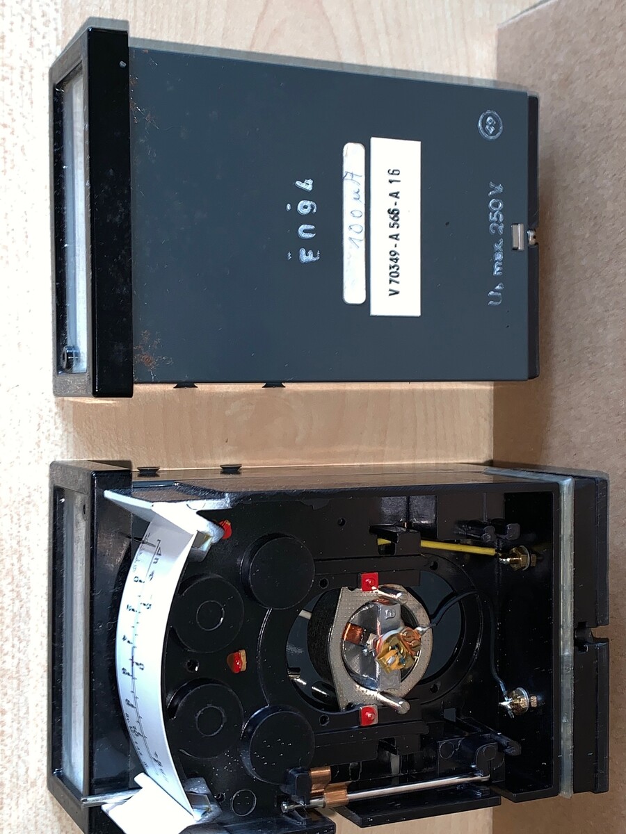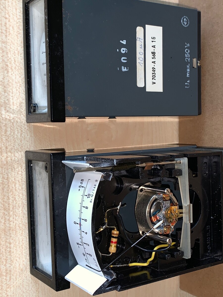 2 Drehspulinstrumente 100 uA Einbaumaß 32 x 66 x 98 mm gegen Portaufrundung für 6 EUR Endpreis incl. Verpackung Ansonsten gehen die Dinger in den Schrott Kontakt bitte unter PN