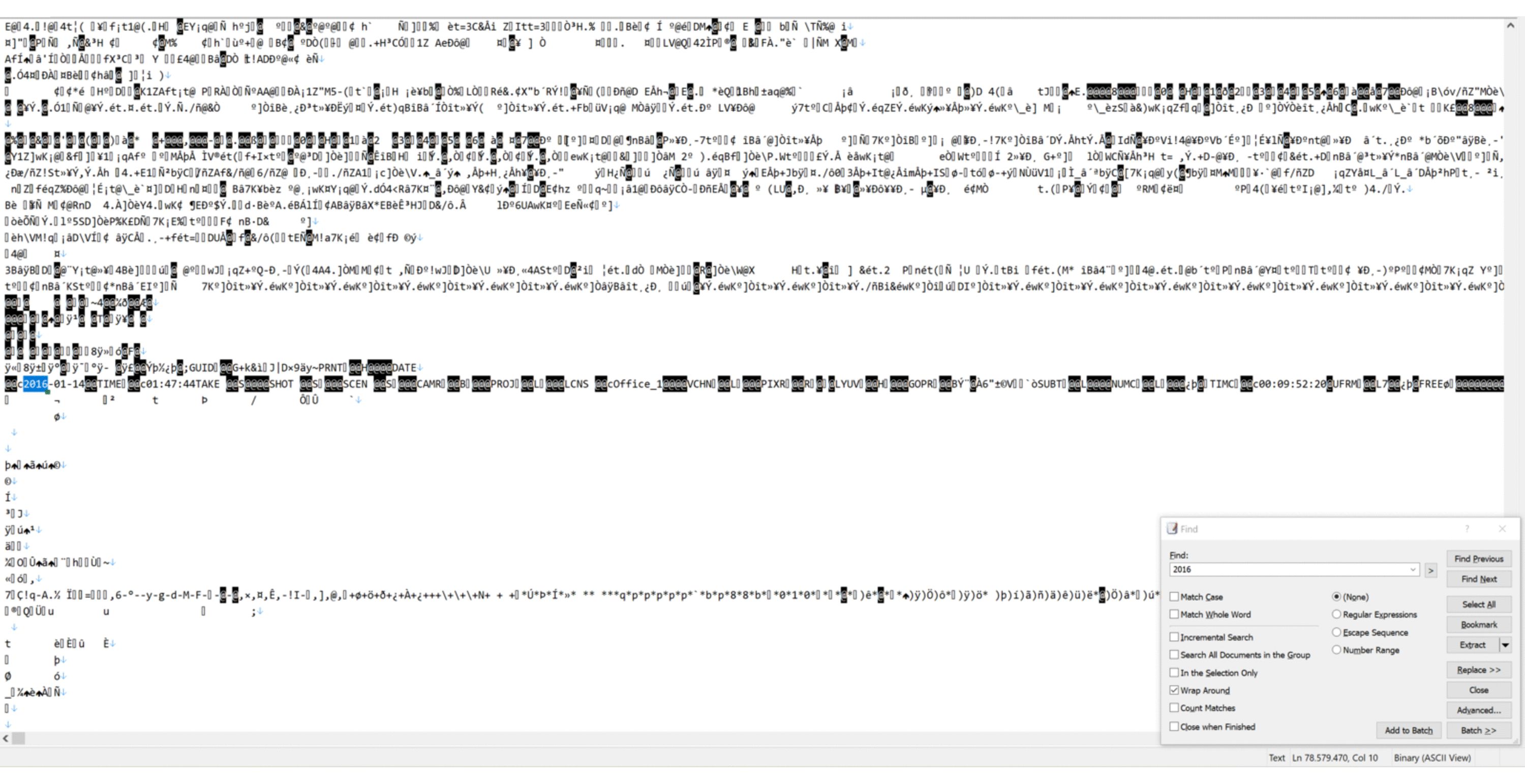 bin nun doch auf was "leserliches" gestoßen immer wieder finde ich eine Stelle die mit 2016 beginnt und den Anscheind hat, ein Gopro Video zu sein. Im anhang 4 aufeinanderfolgende Stellen, jedesmal ist der Zeitstempel eine Sekunde weiter
