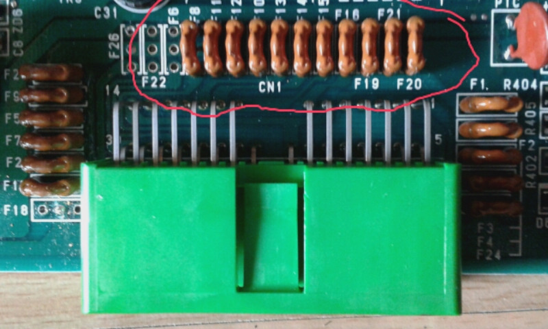 Jens T. schrieb: > Wahrscheinlich eine Sicherung? Nö. Pi-Netzwerke, bestehend aus 2 Spulen (Ferritkern über Draht) und einem Kondensator: