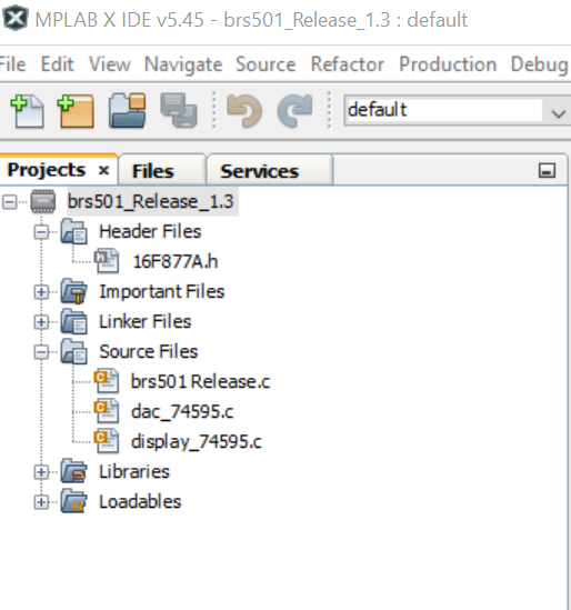 Ich habe die HEX aufgespielt und funktioniert einwandfrei. Kann es sein, dass ich die beiden Include-Dateien dac_74595.c und display_74595.c nicht als C-Datei mit einbinden muß? So steht es in der main-Datei brs501 Release 20.01.2016 (Als Datei angehängt)
