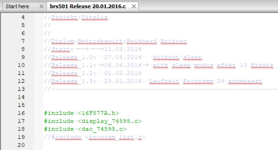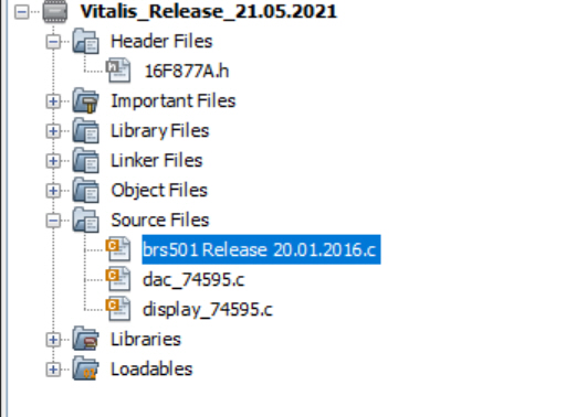 Ich habe die beiden Dateien aus Zeilen 17 & 18 in das MPLAB eingefügt. Dann habe ich in dac_74595.c und display_74595.c je #include <16F877A.h> eingefügt in Zeile 19. Beim Kompilieren sind die Fehler wieder aufgetaucht. Auch hat das löschen der Zeilen 17 & 18 in brs501 Release_20.01.2016 nichts gebracht.