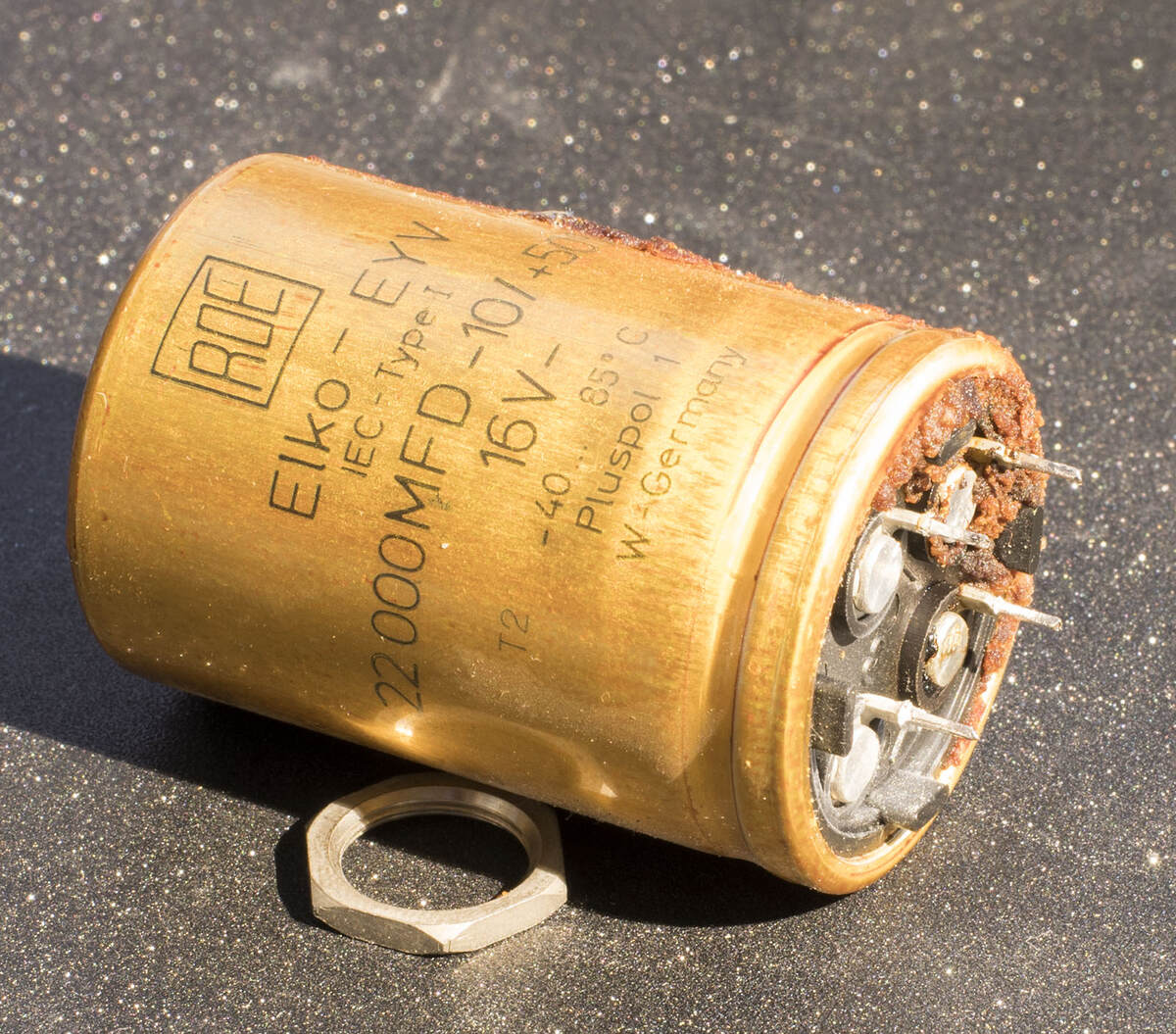 Danke für den Link. Der ist leider zu groß, die Platzverhältnisse am Einbauort sind die Limitation. Etwas von größerem Durchmesser als die original 36mm paßt nicht rein. Da die +- Pins beim Original asymmetrisch sind, wird es auch mit ersatzweise 2-pin Typen problematisch, außer sie sind deutlich schmaler. Dann sind aber meist die Rippleströme schlechter.