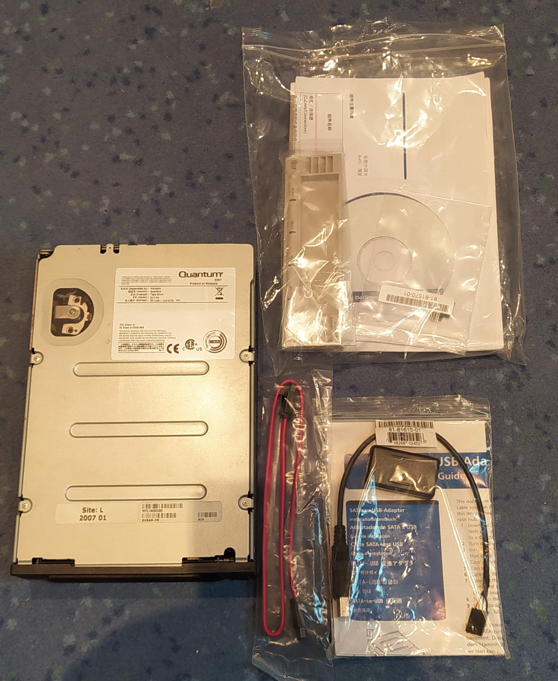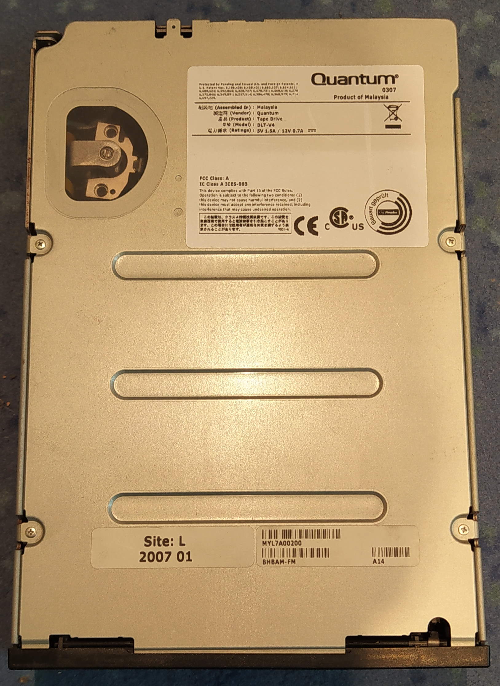 Hallo, ich hab noch einen DLT-V4-Streamer von Quantum gefunden. Gerade unter W7 getestet, das Testprogramm findet keine Probleme, Log anbei. Die aufgeführten "Fehler" in Page 7 sind defekte Kassetten, Reinigungen und PC-Resets, nichts kritisches, warum auch immer das dauerhaft gespeichert wird. Geliefert wird: - Quantum DLT-V4-Laufwerk, intern, SATA-Anschluss, schwarze Blende montiert, frisch gereinigt, optischer Zustand neuwertig, technisch ok. - (interner) USB-SATA-Adapter (kurze Leitung 4-pol. Stiftleiste USB2 auf USB-B-Stecker, Kästchen mit USB-B-Buchse und SATA-Buchse) - SATA-Kabel - Befestigungsschrauben - Beige Blende - "Documentation and Resources" CD - diverse Papiere (Schnellstart, Errata, RoHS) Treiber und Software sowie ein paar Dokumentationen gibt's unter https://www.quantum.com/ServiceandSupport/SoftwareandDocumentationDownloads/DLTV4/Index.aspx Auch wenn's nicht gelistet ist: der letzte Treiber 4.5.1 geht mindestens unter W7 x64 problemlos. Das Teil hat einen normalen SATA-Port und frisst sowohl SATA- als auch PATA/5,25"-Strom. Allerdings haben manche Computer Probleme das Laufwerk am normalen SATA-Port zu erkennen, möglicherweise ein Generationenproblem. Mit dem USB-Adapter oder einem SATA-150-Controller z.B. von Silicon Image geht es aber problemlos, evtl. auch wenn man den internen Port auf SATA-I oder -II begrenzen kann. Von der Blende bis zum Stecker misst es satte 22cm, ansonsten ein ganz normales 5,25"-Laufwerk. Versand per DHL Paket, Deutschland Festland. Zahlung per Banküberweisung, Paypal (gegen Übernahme der Gebühren auch mit Käuferschutz), BTC, LTC. Preisvorstellung 40€ inkl. Versand. Kontaktaufnahme per mail an 2ij_2uzi7pfwejwr ät byom.de, parallel dazu Post hier. Ich antworte dann von meiner GMX-Adresse.