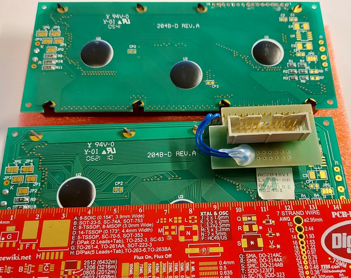 Hallo, habe hier 2St gebrauchte 4x20 LCD abzugeben. 14,5 x6,5cm Zeichenhöhe 9mm, 5V, LED Beleucht. AC204 byilz AC204 BYI gebraucht. Oberes hat noch Schutzfolie drauf. 10€ incl. Versand ( Paypal) mfg Roger