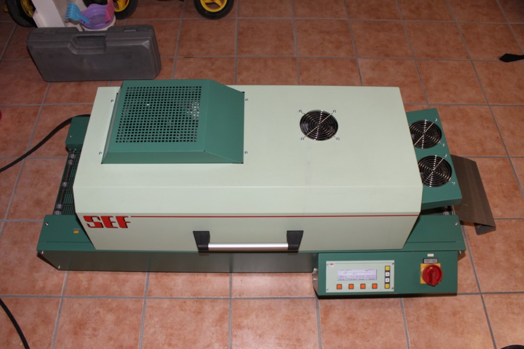 Hallo Elektronik Freunde! Ich habe wegen Platzmangel einen SMD Lötofen vom TYP SEF 548.07G abzugeben. Wurde nur selten benützt, Betriebsstundenzähler zeigt: 784h. Technische Daten - Länge ca. 1400 mm - Preise ca. 660 mm - Höhe ca. 530 mm - Gewicht 90 kg - Arbeitsbreite 250 mm - Aktivkammerlänge ca. 680 mm - Transportgeschwindigkeit 10-60 cm/min, Typisch ca. 20 cm/min - Einlaufhöhe 40 mm - Anschlusswert 3x16 A CEECON 230/400V - Aufheizleistung max. 6,8 kW - Abluftleistung ca. 180 qm/h - Absaugung ist nicht mit dabei Daten findet Ihr hier: http://www.sef.de/wordpress_/wp-content/uploads/2013/06/SMD-Programm_DE.pdf Aufgrund der Dimensionen kein Versand möglich, nur Selbstabholung und damit auch Probebetrieb möglich. Verhandlungspreis: 750 € - Bezahlung bei Abholung. Dies ist ein Privatverkauf unter Ausschluss von Garantie und Gewährleistung. Rücknahme ausgeschlossen. Wäre schön wenn jemand das Teil weiterverwenden würde. Beste Grüße Euer Georg