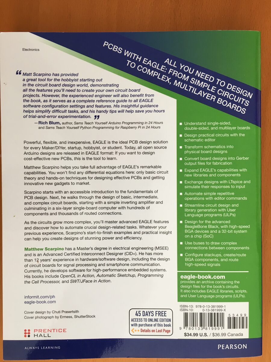 Make High-Quality PCBs At Low Cost Obiges Buch von Matthew Scarpino aus dem Verlag Prentice Hall in sehr guter Verfassung möchte ich abgeben. Für 14EUR inkl. Porto/Verpackung geht es an den ersten ernsthaften Interessenten. Schöne Grüsse.