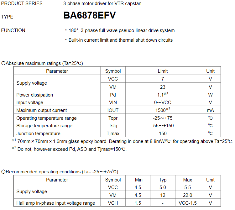 Hallo, ich habe aus einem Philips Videorecorder VR560 einen Capstan Motor ausgebaut. Könnte mir jemand helfen, den Motor zum laufen zu bringen ? Nach meinen bisherigen Recherchen handelt es sich um einen 3 Phasen Motor, der mit 3 Hallsensoren an einen Controller BA6878EFV angeschlossen ist. Wie wäre es möglich, diesen Motor anzuschließen, mit der vorhandenen Platine ? Oder wäre es besser, einen anderen, fertigen Controller zu verwenden ? z.B. 400W 6-60V BLDC 3 phase DC Brushless Motor Controller PWM Hall motor Control Beste Grüße Paul