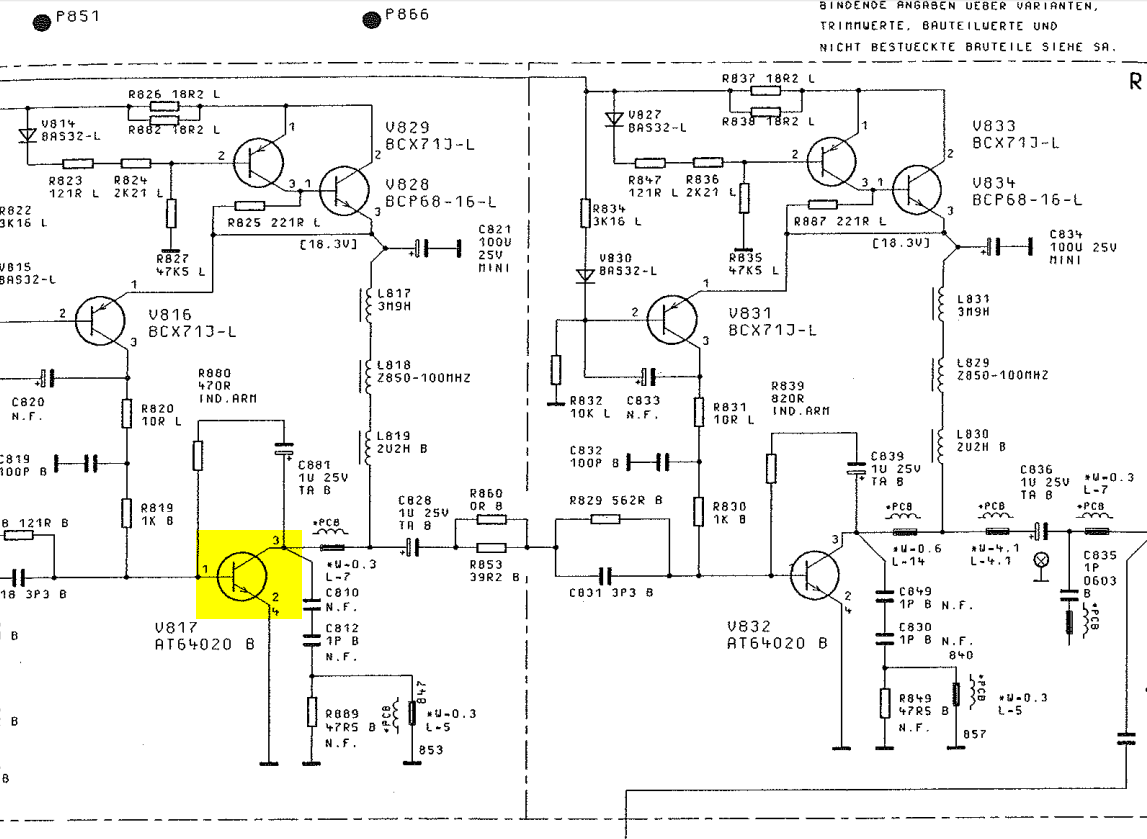 es gibt zwei verschiedene Versionen des BFQ34 Den BFQ34 im Hubschraubergehäuse mit einen Gewindestift unten drunter und den BFQ34T der ist in einen SMD Gehäuse und kleiner als der AT-64020 Der BFQ34T wurde in dem SMY01 verbaut und wurde ziemlich heiß. Der BFQ34 wird in den SMY02 mechanisch nicht rein passen. Und auch elektrisch dürfte er anders sein als der AT64020 Bitte tue dir selbst ein Gefallen und lasse die Bastelei sein. Investiere das Geld in den originalen Transistor. Der SMY02 ist ein zu wertvolles Gerät um es so zu verbasteln. Hier MMICs einzusetzen wird nicht so ohne weiteres funktionieren. Man müsste zuviel ändern. Ralph Berres