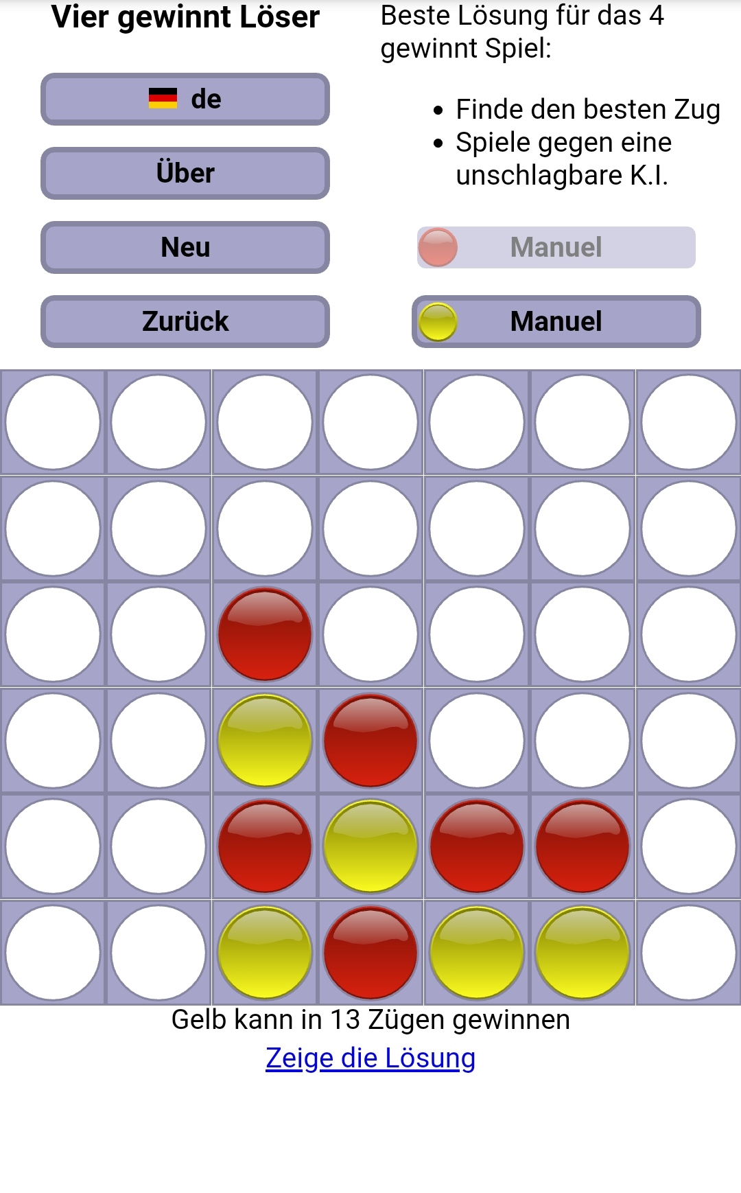 Hallo, inzwischen habe ich mit dem Seeeduino XIAO (Mini Arduino auf SAMD Basis, 48Mhz, 256kb Flash, 32 kb RAM) und einem Display mit Tastenbedienung das Spielt 4 Gewinnt an nur 2 Abenden implementiert. Die Engine habe ich von 1998 aus dem Netz von einem Programmierer den den MinMax Algorithmus und Alpha Beta Pruning umgesetzt hat und sie in die Arduino IDE eingepasst. Grundsätzlich ist das ein binärer Baum, mit Vorausberechnung, 8 Rekursionsstufen sind möglich mit den 32kb des Xiao. 1 Zug dauert zwischen 1s und 8s, je nach Komplexität. Inzwischen haben etliche Personen versucht den XIAO zu schlagen, nicht ein einziger hat jemals ein Spiel gewonnen. Lässt man es gegen sich selbst spielen enden die meisten Spiele unentschieden, weil das Board voll ist. Dauert aber, rund 2 Minuten pro Spiel. Ein Arbeitskollege fluchte nur als er den winzigen XIAO sah, dass dieses Teilchen bei diesem Spiel immer besser war als er. Hat man überhaupt eine Chance den zu schlagen?
