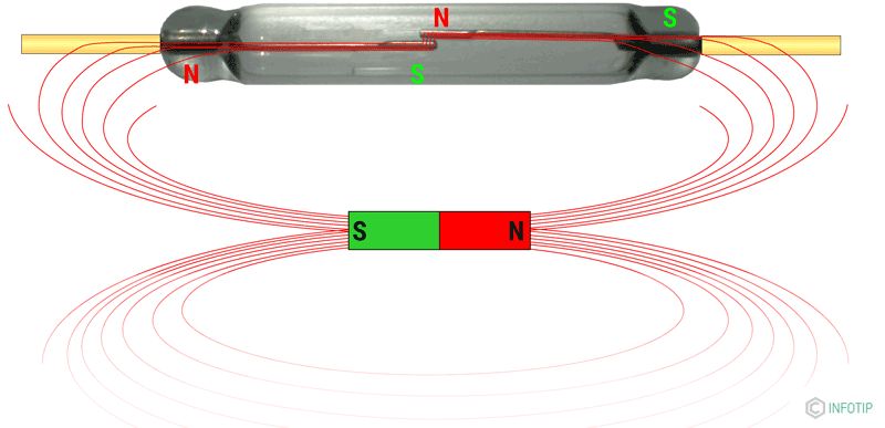 Hallo! Ist ganz normal: Der Reed- Kontakt zieht an, wenn zwischen den Kontaktzungen eine unterschiedliche Magnetisierung besteht. Platziert man einen Magnet mit einem seiner Pole mittig über dem Kontakt, sind beide Kontakte einem gleichstarken Magnetfeld ausgesetzt und ziehen sich deshalb nicht an. MfG Johannes R.