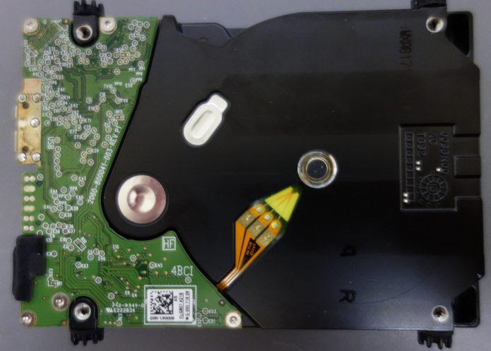 Nachdem die Kopierorgie fertig war, habe ich mal das PCB abgenommen. Es ist eigentlich einfach, da freundlicherweise alles auf 2 Steckanschlüsse lief. Sehen tu man allerdings: nichts (abgesehen von einen kleinen Riß an der linken Seite des Steckergehäuses). Die Leiterbahnen selbst sehen gut aus. Es sieht also so aus, als hätte sich die Platte jetzt in eine USB2 Platte verwandelt. Da mit Heißluft dranzugehen erscheint mir zu riskant. Gerade gefunden: https://imgur.com/LdT6YM8 Man könnte natürlich eine SATA Platte draus machen. ;-)