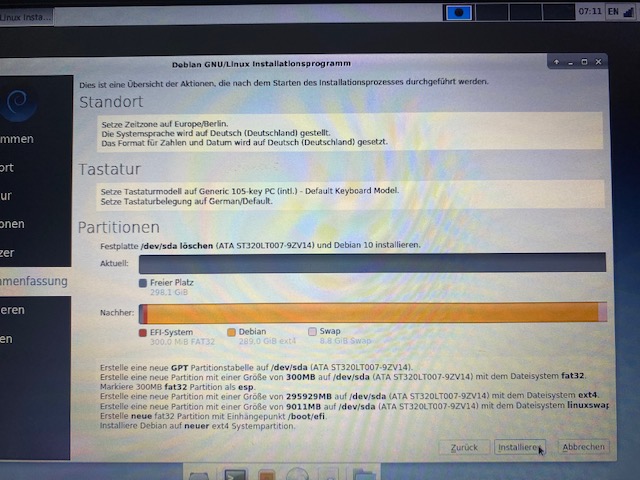 Nano schrieb: > Oder, wenn du mit der Kommandozeile umgehen kannst, könntest du vom > Debian Installationsprogramm aus in eine Konsole wechseln und dann dort > mit fdisk versuchen alles auf der Platte leer zu machen und neu > einzurichten. "live" war ein guter tipp, um weiterzukommen. Ich lösche bei der installation immer alle partitionen, also gehe ich davon aus, dass da fdisk ohnehin im Hintergrund mitspielt. Aber ich habe mal das efi-bootmenü aufgeräumt. Da waren schon 4 alte Installationen vermerkt. Jetzt sieht es aus, wie auf den Bildern vermerkt. Offenbar versucht er bei der Installation immer den boot-Eintrag ins efi bootmenü zu schreiben. Er findet die richtige Position, aber behauptet es wäre kein Speicher dafür frei. Einfach ohne diesen Eintrag von der Festplatte zu booten scheint man heutzutage nicht mehr machen