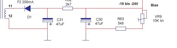Hallo, hier ein Auszug vom jetzigen Schaltplan, links ist ein Transformator und hinter VR9 / R62 sollen dann einstellbar -19 bis -24V rauskommen. Sammy