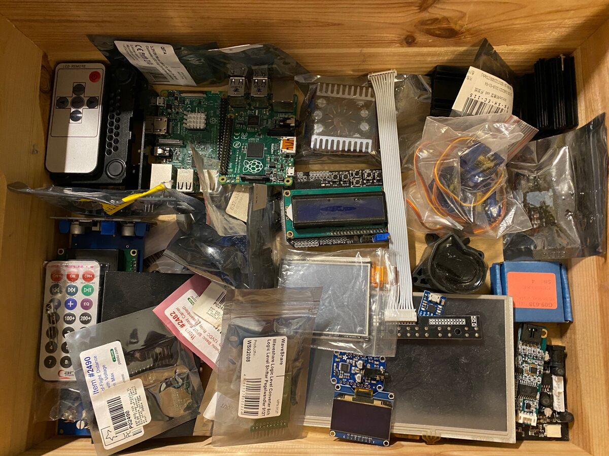Guten Abend, ich habe beim Ausmisten eine Box zusammengestellt, die ich als ganzes für 33€ (inkl. Versand in DE) abgeben möchte. Enthalten sind: - Raspberry Pi 3 Model B V1.2 - Raspberry Pi B+ V1.2 - 7"(?) HDMI Touchscreen mit Controllern - 3D-Drucker HMI Display, Encoder, SD-Slot - 1.54" OLED - Mehrere Spannungsregulatoren mit hohem Ausgangsstrom (Teilweise OVP) - VL53L0X Time-of-flight (OVP) - OV2640 2MP JPEG (OVP) - Waveshare Logic Level Converter (OVP) - Mehrere Fernbedienungen - Nintendo DS Display - 3 blaue Servos - VGA-Switch - Arduino LCD mit Tastern - 12V Relais (OVP) - Audio Amplifier (OVP) - 2x USB-Seriell-Wandler (1x OVP) - Adafruit UDA1334 DAC - WS2812 LEDs - 2x ATtiny85 (als USB Stick) - mehr Taster (mit Geschwindigkeitsmessung) - Kühlblöcke - Raspberry Pi Gehäuse (ohne Deckel) - AS6C1008-55PCN (neu) - Gardena Elektromagnet Ich habe die einzelnen Teile nicht getestet und garantiere nicht für deren Funktion. Jedoch ist es aus meiner Sicht unwahrscheinlich, dass diese defekt sind. Ich möchte keine Posten, sondern alles am Stück verkaufen ;-) Keine Rücknahme. Gewährleistung ausgeschlossen. Bezahlung gerne über PayPal oder Überweisung. Grüße, Benedikt