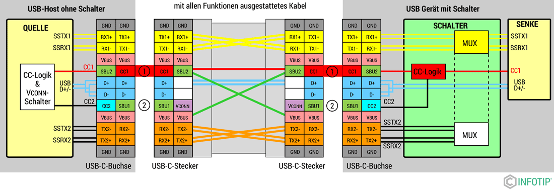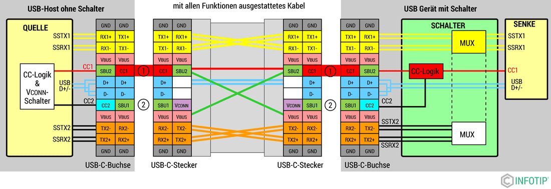 Hallo, ich habe eine Frage zu USB 3. Wenn man sich den Stecker an z.B. einem USB Stick anschaut ( https://en.wikipedia.org/wiki/File:USB_3.0.png ), dann ist StdA_SSRX-/Pin5 links. Bei der Buchse ( https://en.wikipedia.org/wiki/File:USB_3_Pins_static.jpg ) ist StdA_SSRX/Pin5 rechts. Das macht ja auch soweit Sinn, wenn man den Stick in die Buchse steckt, werden die beiden Pin5s miteinander verbunden. Aber je nachdem, wie man auf die Verbindung schaut, können die Daten in unterschiedliche Richtung fliessen. Man kann entweder sagen, dass der Host die Signale empfängt oder der Stick empfängt die Signale. Es ist ein bischen wie serielle Schnittstellen und DTE vs DCE. Der mit TX markierte Pin kann je nachdem ein Eingang oder Ausgang sein ( https://www.bb-elec.com/Images/ModemStraightDB9.aspx ). Meine Frage: Vom USB Stick betrachtet, ist StdA_SSRX/Pin5 ein INPUT oder OUTPUT? Danke