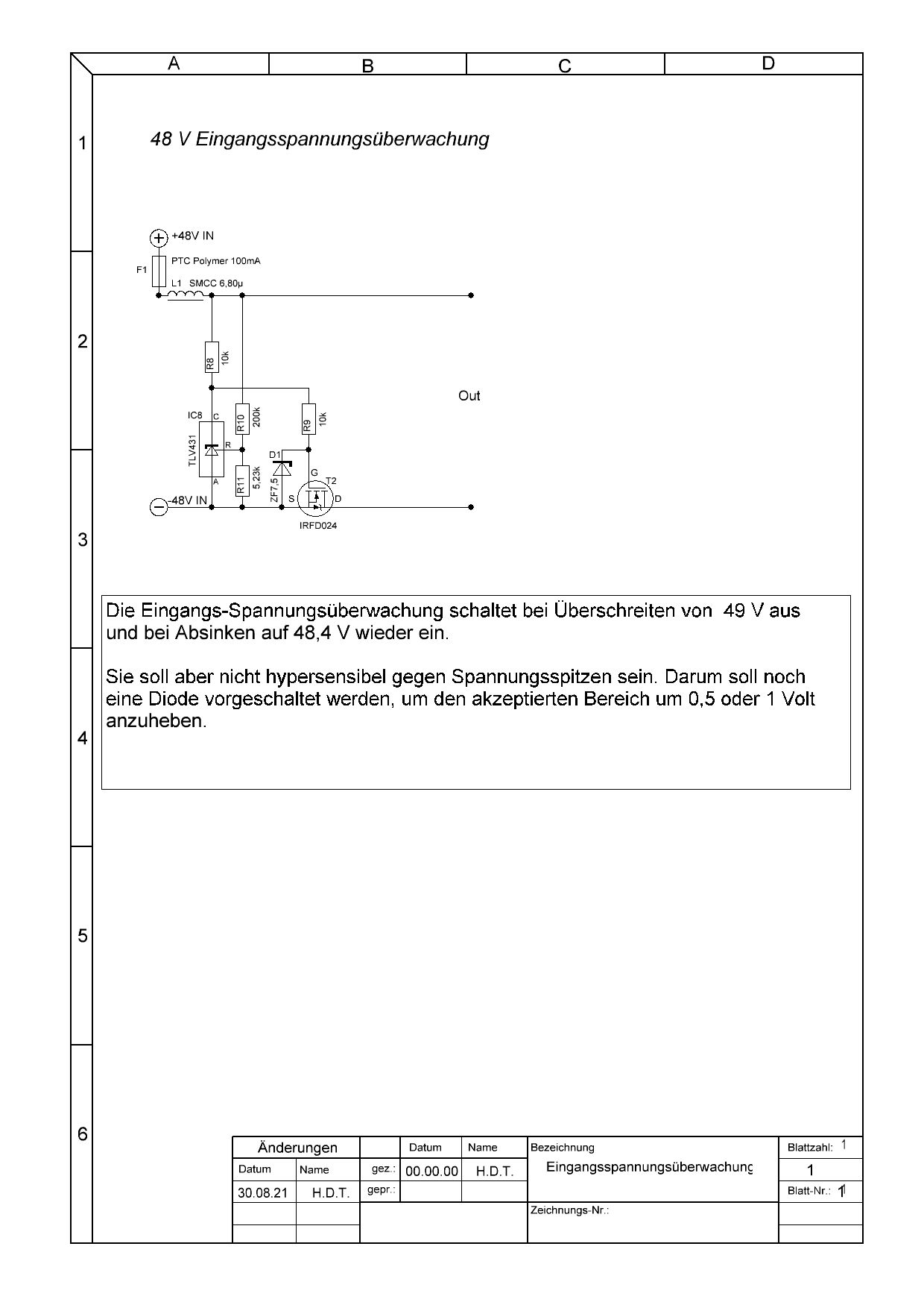 Meine Überspannungs-Schutzschaltung für 48 Volt schaltet bei 49 Volt ab und bei 48,4 Volt wieder ein. Ich möchte eine Diode vorschalten, um den Abschaltpunkt etwas anzuheben.