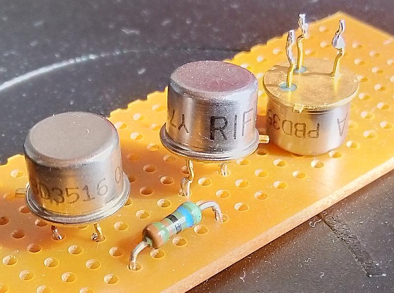 Hallo, hmm, TO5 und TO39 ist eigentlich gleich - bis auf die Tatsache daß TO39 kürzere Anschlussdrähte hat weil TO5 ursprünglich noch für verdrahtung ohne Platine auf lötleisten u.dgl. gedacht war. Vom Zeitpunkt her würde ich auf Anfang/Mitte der 90er Jahre schätzen - da hat schon lange niemand mehr frei verdrahtet, also meine ich eher TO39. Die Messung (an mehreren Exemplaren, erst einmal nur schnell mit dem Multimeter) ist etwas merkwürdig, die C-B Diode würde mit ca. 650mV gut zu einem PNP Transistor passen, die B-E Diode zeigt aber rund 1050mV. Für Darlington fast zu wenig, für einen "normalen" Transistor aber zu viel. Werde die nächsten Tage mal einen Testaufbau machen und etwas genauer messen, Stromverstärkung und eventuell die Diodenkennlinie aufnehmen. Chris