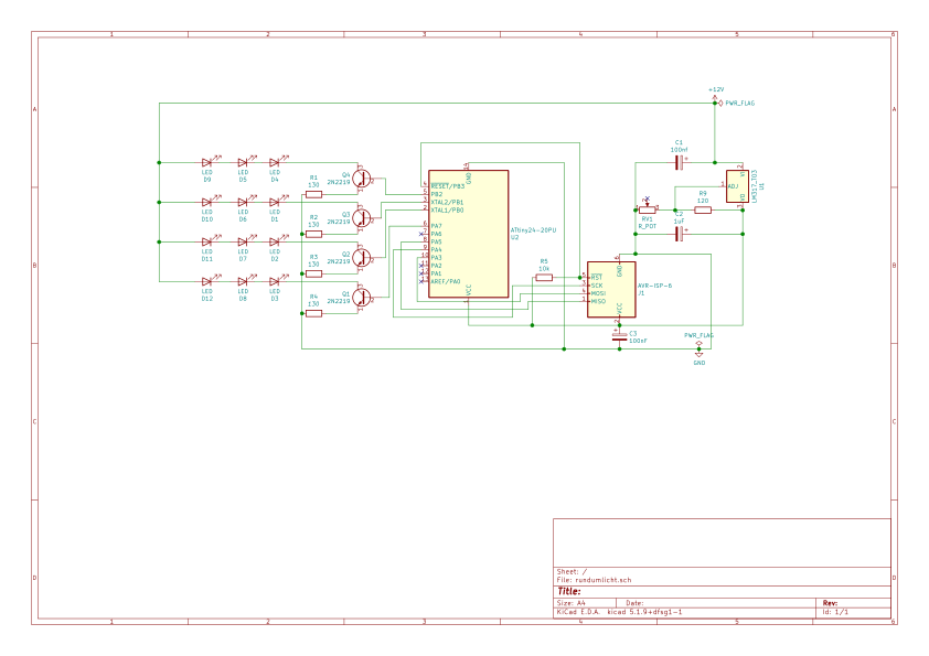 Ist nur Zeitversetzt aber die verdopplung von 12 auf 24 leds hat einiges gebracht habe das ganze jetzt mit 8 Ledplatinen gebaut.Habe den Transistor, die drei Leds, sowie den 560 Ohm Widerstand immer auf eine kleine Lochraster platine gelötet. Denn Rest auf dem Boden auch auf eine kleine Lochrasterplatine. https://tuxist.de/files/messung/test.c https://tuxist.de/files/messung/Makefile