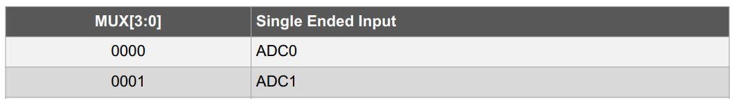 Falk B. schrieb: > Hmm. > Aber ich hab noch einen Fehler gefunden. Du liest den falschen ADC-Kanal > aus. Dein Poti hängt an A1, du liest aber Kanal 0 aus. Eher so. > > ADMUX |=(1<<1); Auf dem Datenblatt von ATmega328p steht so bei ADMUX aus Wahl, ich hoffe, ich habe den richtigen Bit ADC1 mit 1 an 0.MUX0 bit ausgewählt.
