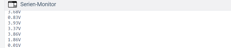 Also was ist jetzt? Was erscheint in deinem Terminal, wenn du den virtuellen Poti auf sagen wir 3,5V stellst und dort läßt? Dann müßte konstant 3,5V erscheinen, immer und immer wieder.