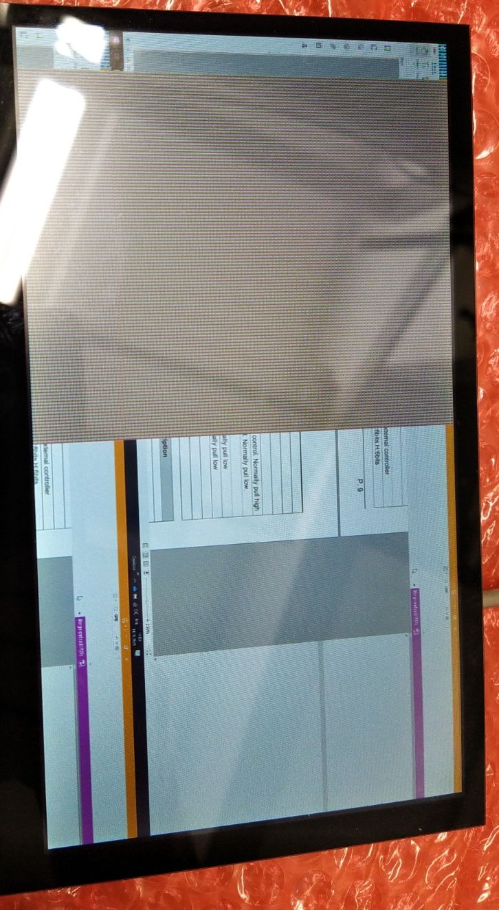 Hallo Forum, ich habe hier zwei Displays (7'' 1024x600) und einen LCD Controller (THV65-V4) auf den Tisch bekommen mit der Bitte, das für einen Kollegen im Urlaub mal eben zum Laufen zu bringen. Nun mache ich schon eine Woche lang dran rum, den Fehler im halben Display (siehe Foto) zu beheben. Könnt ihr mir einen Tipp geben, an welcher Stelle ich suchen muss? Der LCD Controller hat LVDS Ausgänge für ODD und EVEN. Das Display hat aber nur eine single LVDS Schnittstelle. Könnte es damit zusammenhängen? Wie verhält sich ein Display mit single LVDS an einem Controller mit dual LVDS? Den horizontalen SYNC habe ich testweise von 8bit auf 6bit umgestellt, mit dem Ergebnis dass Linienfehler noch da waren, aber im funktionierenden Teil die Farben komplett durcheinander kamen. Also wieder zurück auf 8bit (wird mit einem pull Widerstand am SELB Eingang des Displays konfiguriert). Unabhängig von den Linien wird das Display nicht komplett ausgefüllt. Ich vermute, das liegt an einer Inkompatibilität mit dem LCD Controller, der andere Formate unterstützt. Momentan läuft der Controller an meinem Laptop mit Auflösung 800x480, Portrait. Ich hänge auch ein Datenblatt eines der beiden Displays an. Der Fehler tritt bei beiden Displays gleichermaßen auf. Danke sehr für jegliche Tipps!