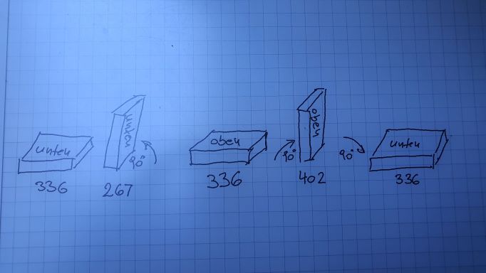 Dann hast du die falsche Achse erwischt... Der Sensor hat 3 Achsen, du liest offenbar nur eine aus. So wie es aussieht, nimmst du die Achse, die in deiner Zeichnung beim aufgestellten Sensor vertikal liegt, und beim liegenden Sensor horizontal. Dann ist es egal, wierum er flach liegt. Du brauchst die Achse senkrecht dazu, die beim liegenden Sensor vertikal verläuft.