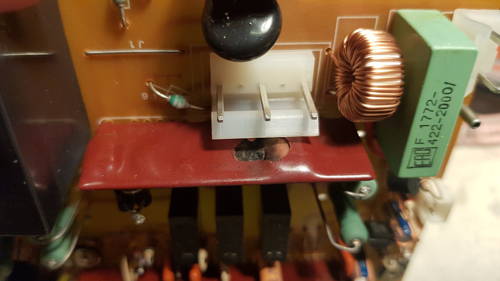 c-hater schrieb: > ... vermutlich einigermaßen hoffnungslos. Was aber ziemlich sicher > geht: Der Ersatz dieses Hybridteils durch eine adäquate Schaltung auf > einem Sub-PCB. Wenn man denn die Schaltung des Hybridteils kennen würde. Das braune Zeugs ist sehr stabil und beim Versuch, das herunterzubekommen, mache ich vermutlich alle kaputt und unansehnlich. Der Aufwand übersteigt auch mit viel gutem Willen den Restwert der Maschine erheblich. Axel S. schrieb: > Mit an Sicherheit grenzender Wahrscheinlichkeit ist in dem Hybridriegel > nur die Drehzahlsteuerung für den Motor drin. Also ein Triac bzw. wohl > eher Thyristor angesichts der extra-Dioden drum herum. Den könnte man > natürlich auch diskret auf die Platine zimmern. Platz genug ist ja. Naja, so sehr reichlich Platz ist nicht. Tippe auch eher auf Thyristor, zumindest wird der Motor mit DC angesteuert. Regelung könnte mit drin sein, sind auf jeden Fall eine ziemliche Menge Pins, denke trotzdem nicht, dass dort die Bauteile nur munter aufgereiht und ausschließlich über die Platine verdrahtet wurden. Der Motor wird an zwei seiner drei Anschlüssen (der 3fach Steckkontakt) bestromt, der dritte liefert irgendwas was über die 33k||33k||33k=11k und eine LED eines Optokopplers geht. > Allerdings geht der nicht aus Jux und Dollerei kaputt. Zuerst würde man > mal den Motor überprüfen, ob der überhaupt dreht. Das habe ich mich auch gefragt. Drehen lässt sich der Motor schon mechanisch, auch nicht auffallend schwer. Irgendeine Form von Überlasterkennung hätte ich schon erwartet. Es gibt auch noch auffällig dicke Drähte (vielleicht nur eine Abschirmung?) aus Richtung Motor an den kleinen 2er-Anschluss. In der Mechanik hängt auch noch ein kleiner Hall-IC, mit dem die Maschine offenbar das Erreichen des oberen Totpunktes der Nadel überwacht (es gibt eine Funktion, dass sie dort automatisch stoppt). Leider kann man die Kabel kaum in der Konstruktion verfolgen, allein die Platine ließ sich erstaunlich einfach entnehmen. Nochmal bei der Besitzerin nachgefragt: Der Motor hätte sich kurz vor dem Knall gedreht, aber auffällig zu langsam. Wicklungsschluss? Wie auch immer: Ich rechne ja auch nicht damit, dass es dieses Bauteil auch in nur bauähnlichen Maschinen gibt. Normalerweise gibt es ja jedes einigermaßen exotische Teil irgendwo im Internet, aber vielleicht gibt es ja auch irgendwo einen Krauter, der seinen Katalog nicht online hat, der aber als Geheimtipp in der Szene gilt? Schon der Hersteller der Elektronik könnte helfen, wenn man denn wüsste, wer.