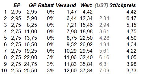 der Versand stets eingerechnet ist.