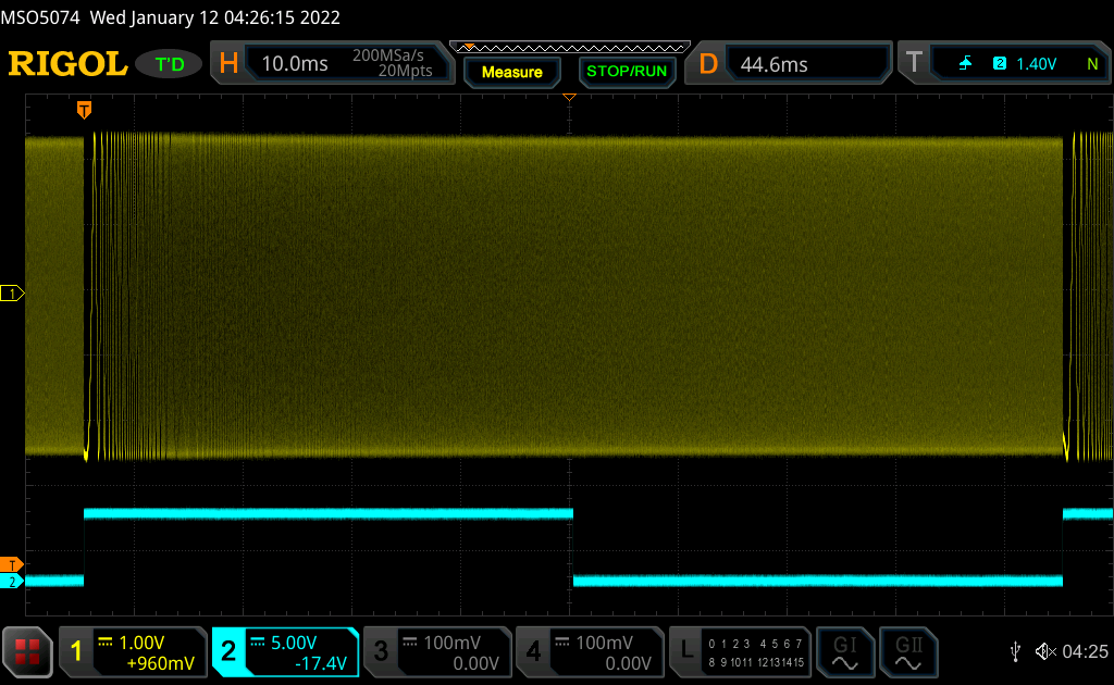 Tim Gabinski schrieb: > Ist das wirklich so? Nein, das ist nicht so. Ich weiß nicht wovon hier Cartman (Gast) berichtet, aber eines der Siglent Geräte hatte er ganz sicher nicht in der Hand. Wenn ihr Fragen zu dem Gerät SDG2042X habt, dann immer her damit. Wenn es nicht zu aufwändig ist probiere ich gerne Dinge aus. So, ich habe mal Sweeps rangehängt. Jeweils 1 Hz bis 100 kHz. Einmal in 6 s und 1 s/Div am Oszi. Und dann auch der Sweep in 6 s aber am 20 ms/Div am Oszi, man sieht also die ersten 180 ms. Und dann auch ein Sweep 1 Hz bis 100 kHz in 90 ms bei 10 ms/Div am Oszi. Ja, ein Sweep ist nicht sooooo irre trivial zu triggern wenn man den Trigger Out nicht verwenden möchte. Es ist also gut möglich, dass man etwas falsches sieht wenn man das Oszi falsch bedient. Alte Oszis mit Aliasing zeigen auch gerne komplett falsche Signale an.