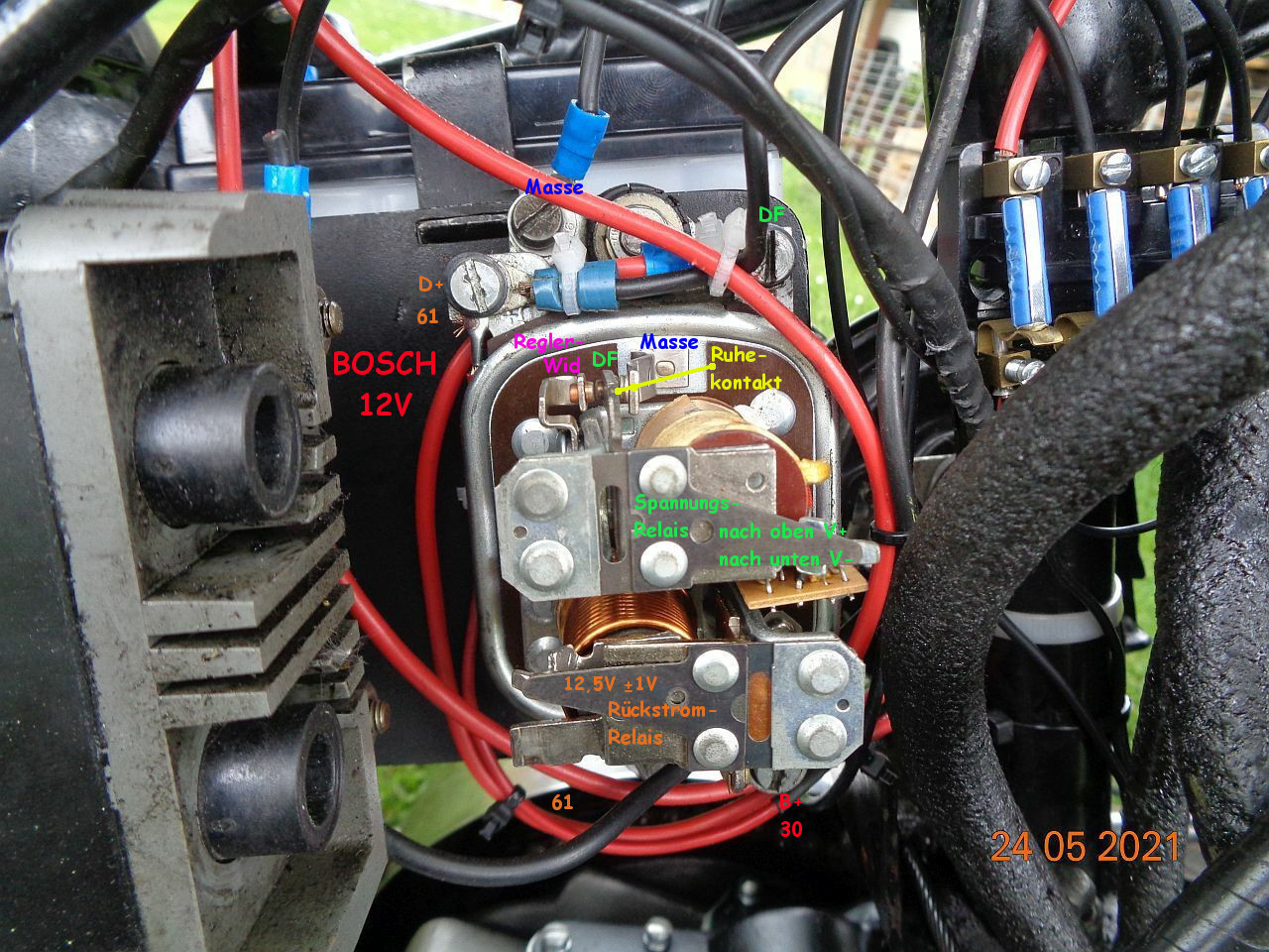 Jetzt muss ich mich doch noch hier einklinken. Habe bisher mit Interesse von den frühen Reglern mit "Spannungsspule" gelesen. Aus der Zeit komme ich nicht, hatte in den 80er Jahren noch einen alten /8 mit Stern, der hatte nach meiner Erinnerung schon einen elektronischen Regler. Jedenfalls gab's keine Probleme. Wie muss ich mir diese "Spannungsspule" vorstellen? Ich male es mir gerade wie ein Relais aus, welches den Saft zur Batterie unterbricht, sobald eine Spannung von 14,4 Volt erreicht ist. Aber das mit dem Nachstellen ist mir nicht klar.