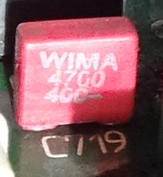 C720: 0,1µF/400V, könnte eine X(2) Type sein. C719: 4,7nF/400V