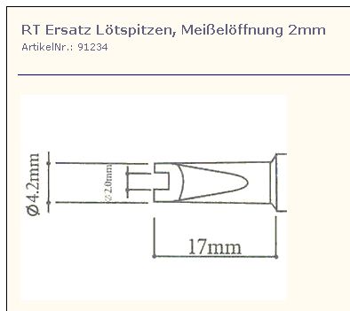 >Ist die abgebildete Spitze (ayoue) auch für SMD-ICs gedacht? Weiss ich nicht, ich meinte (und benutze) die Ersa SolderWell mit Hohlkehle Typ 0832 HD http://www.dobbertin-elektronik.de/index.htm