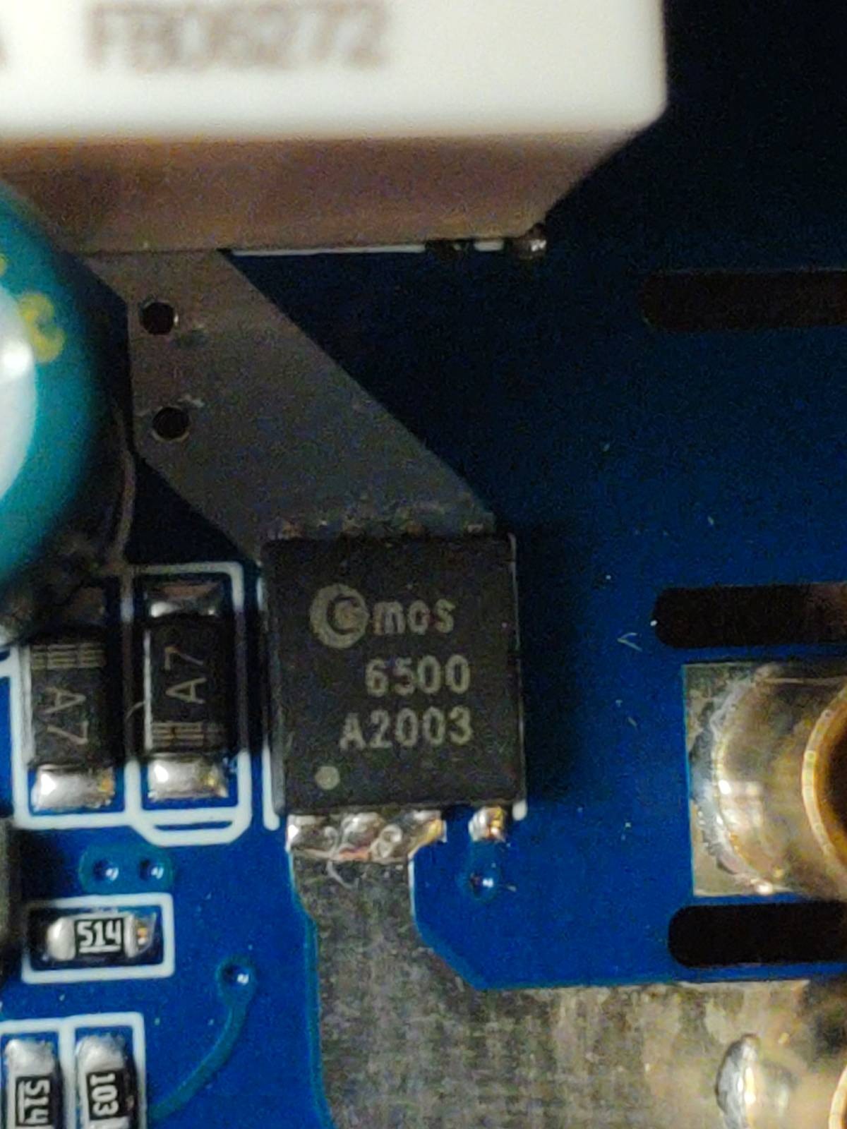 PS. Der im Anhang würde sich als LogicLevel-MOSFET eignen und sieht sehr ähnlich aus. Sehr wahrscheinlich hast du einen äquivalenten Typ verbaut. Warum ist da soviel Schmodder und sichtbares Kupfer am Source-Anschluss?