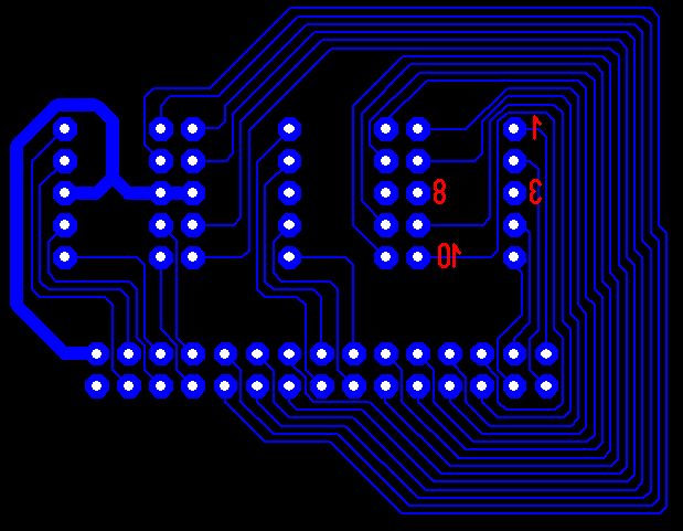 Die Pinbelegung ist noch nicht fix, das schaut schonmal ganz ordentlich aus. Ich habe mich auch noch garnicht mit der binär-7Seg Wandlung beschäftigt, aber warscheinlich muss ich das ganze dan auf der anderen Platine mit Kabelbrücken wieder in die richtige Reihenfolge bringen also Pin 1-10 der Segmentanzeigen.