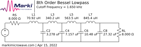 Moin, Also bei der Schwaeche des TO fuer bunte Kondensatoren waer' das vielleicht noch eine fantastische Moeglichkeit: Ein Bessel-TP 8.Kajuete fuer 8 Ohm mit Grenzfrequenz 1650Hz. Wie's der Zufall will, hat der schoene, linealglatte 0.3 msec Gruppenlaufzeit im Durchlass. Hier der Link zum Selberspielen: https://rf-tools.com/lc-filter/ Das Ding einfach noch zwischen die Originalfrequenzweiche und den Tieftoener haengen. Wenns jetzt unbedingt mit Roehren sein soll, koennt' man's sicher auch so umrechnen, dass man das mit 4 Teilfiltern je 2. Ordnung realiseren kann; das wuerde dann evtl. jeweils mit 2x ECC81 oder sowas gehen koennen. Aber wer weiss schon, ob da die Farben der Cs noch genehm sind... Gruss WK Edit: Hm - hier sieht das Schaltbild als Attachment etwas eigenartig aus. Keine Ahnung an was das liegt. Ist mir aber auch eher wurst.