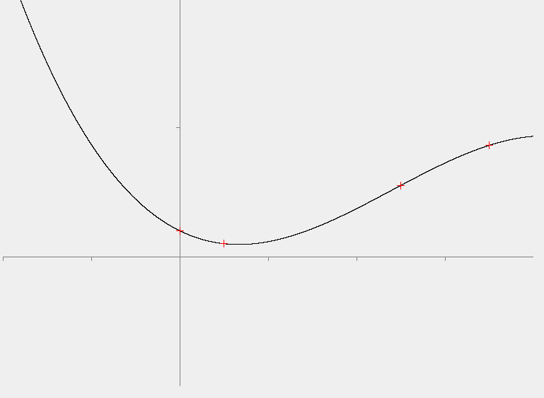 Interpoliere 10000 Datenpunkte im Intervall [-2,4] mit Schrittweite 6.0E-4.... So das rechnet er mir aus :) Aber 4 Punkte sind wirklich arg wenig, besonders an den Rändern kann es deshlab manchmal zu starken ungenauigkeiten kommen!