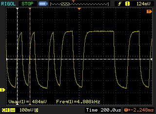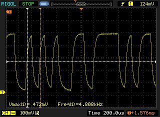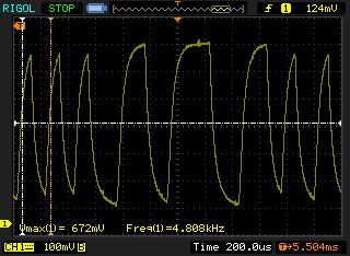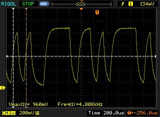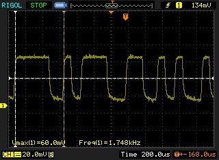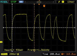 Sieht doch ganz brauchbar aus. Jetzt noch einen Schmitt-Trigger dahinterschalten, der das Signal in Rechteck umwandelt und invertiert. Da kannst du dann mit dem anderen Kanal vom Oszi auch noch messen zum Vergleich.