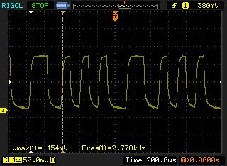 Florian F. schrieb: > 1) R5 auf 150k gesenkt, dann die zugehörigen 2 Diagramme aufgenommen > (R5_150k_10us.png & R5_150k_200us.png). Die Diagramme sahen ganz gut > aus, im Terminal kam nur Murks an: Vermutlich Lötfehler, Wackelkontakt, etc. > 2) R1 auf 6,5k gesenkt, R5 auf 150k geblieben. Ergebnis war, dass ich > gar keine Rechteckimpulse mehr gesehen habe, sondern nur noch eine 3,16V > Gleichspannung. Habe danach nochmal die Platine kontrolliert, aber da > war kein Kurzschluss. R1 zu klein. > 3) R1 auf 7,5k eingestellt, R5 auf 150k geblieben. Ergebnis sieht man in > R1_7k5_R5_150k_20us.png und R1_7k5_R5_150k_200us.png. Es sieht aus, als > sei ein 2,8V Offset + 0,4V Gewackel zu sehen. So kommen auch keine Daten > an. R1 ist zu klein. > 4) R1 auf 10k eingestellt, R5 auf 150k geblieben. Ergebnis in > R1_10k_R5_150k_200us.png und R1_10k_R5_150k_10us.png zu sehen. Meiner > Meinung nach, sieht es jetzt noch schlimmer aus als vorher (es gibt > wieder mehr Bananen ;-) ). Trotzdem funktioniert aktuell die Ausgabe im > Terminal mittels USB-UART-Adapter ganz zuverlässig. OK. > Was ich nicht verstehe: Variante 1) sah vom Signal her am besten aus, > aber im Terminal kommt nur Müll. Siehe oben. Probiers nochmal. Miss auch am RX-Pin, das zu deinem UART-Adapter geht, nicht nur an T3. > Sonst noch irgendwelche Ideen? Ich glaube das reicht. Wenn du Variante 1) zum laufen bekommst, hast du das Optimum hier erreicht. Die Pulsbreite mißt man mit den Cursorn 1 +2 . Einschalten, richtigen Modus einstellen und entsprechen hinkurbeln.