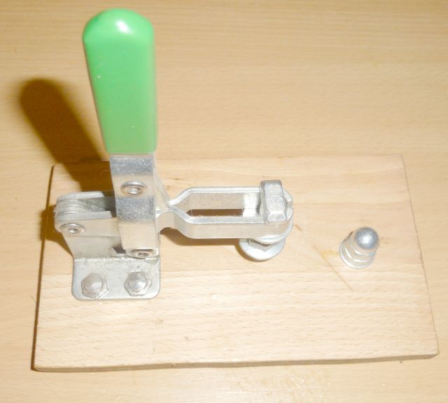 Moin. Ist ein vertikaler Kniehebelspanner. Vielleicht wirklich zum verkleben mit Kontaktkleber gedacht. Oder ein Biegewerkzeug mit der Hutmutter als Widerlager? VG Micha