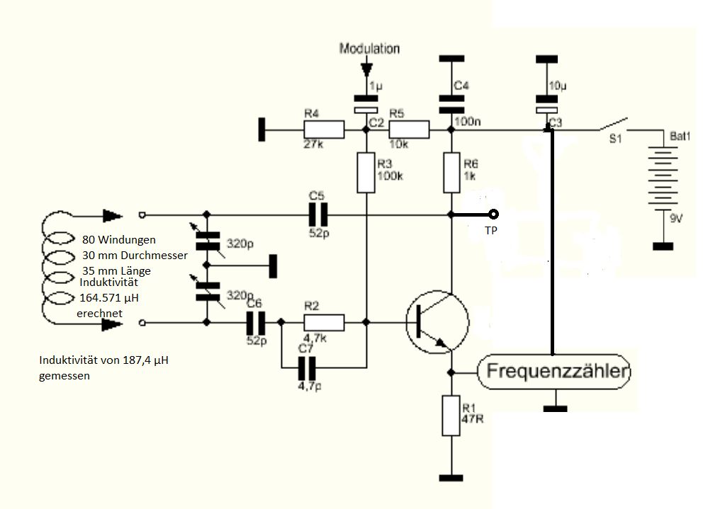 von Hobby B. schrieb >Um Missverständnisse hier noch mal auszuschließen die Probleme treten >nur mit den in den Bausätzen mitgelieferten Transistoren vom Typ S9018 >auf. Meß doch mal den Ruhearbeitspunkt, also wenn keine Spule angeschlossen ist, bei den unterschiedlichen Transistoren. Also die Spannung an deinen Punkt TP gegen Masse. Die sollte etwa 1/4 bis 1/2 der Betriebsspannung sein.