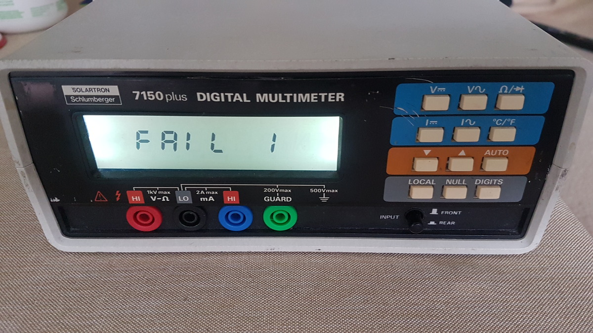 Mein Multimeter will nicht mehr - zeigt Fail 1. Eventuell nur eine Kleinigkeit, Bauteilalterung etc. Mir fehlt die Zeit und das notwendiges "Handwerkszeug" für eine Fehlersuche und Reparatur. Unterlagen gibt es im Web,für einen Profi u.U. eine Kleinigkeit. Ich sage mal 150 Euro plus Porto, da das Gerät ansonsten noch in einen guten Zustand ist (siehe Foto). Unter anderen wurde ein neuer Netzfilter und neue Messbuchsen eingebaut Bei Interesse bitte PN - vielen Dank.