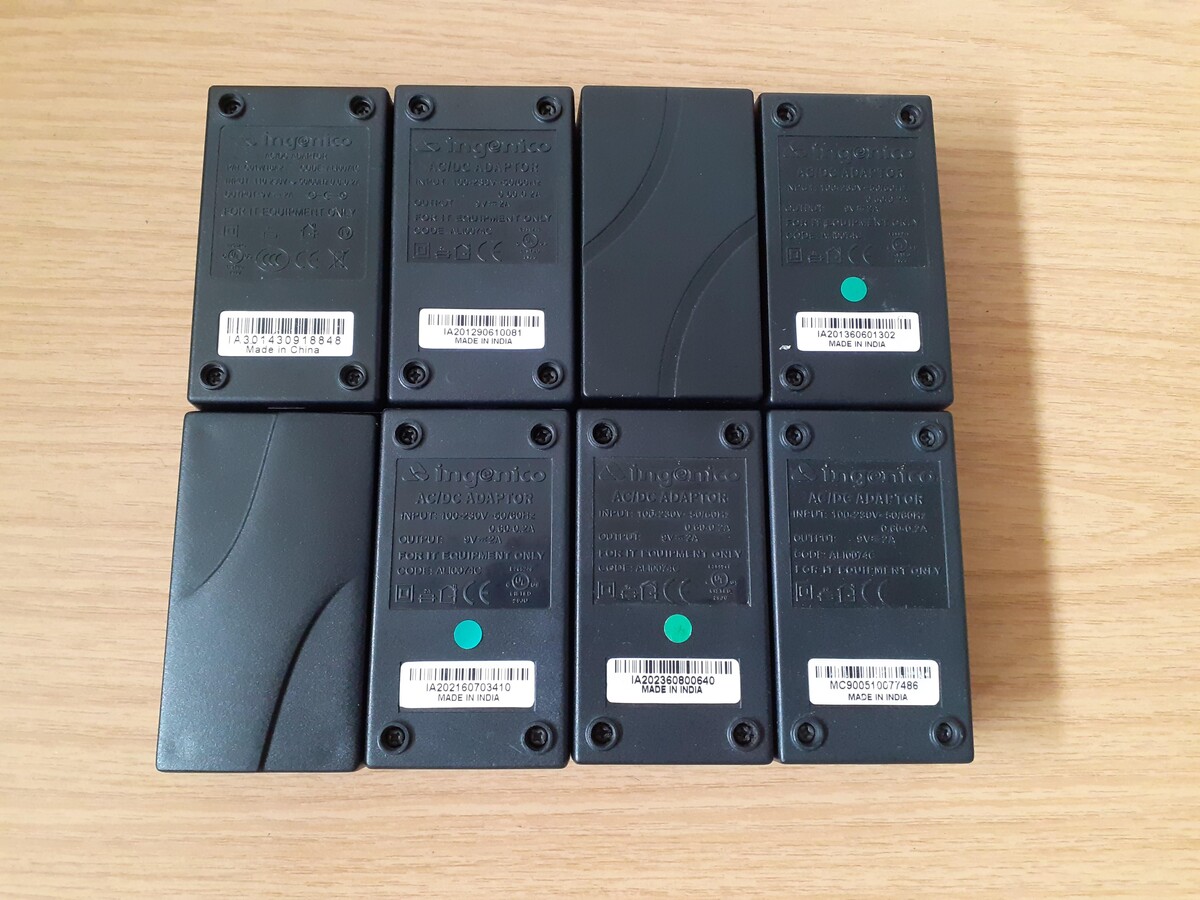 1.: 11x ALI0074C, Switching Adapter 9V-=-2.0A, HxBxT ca.: 2.9x 4.9x 8.2cm, ALI0074C, markiert mit z.B. Ingenico, Eingang Euro-8*, Ausgang Hohlstecker* (Switching PSU / Ladeteil) 2.: 10x ALI0074C, AC/DC Adaptor 9V-=-2.0A, HxBxT ca.: 3.8x 5.8x 10.2cm, ALI0074C, von Ingenico, Eingang Euro-8*, Ausgang Hohlstecker* (Switching PSU / Ladeteil) 3.: 2x Ingenico PSWU90-2000, AC/DC Adaptor 9V-=-2.0A, HxBxT ca.: 3.8x 5.8x 10.2cm, Eingang Euro-8*, Ausgang Hohlstecker Kabel mit Ferrit 4.: 8x Steckernetzteile: 1x OPTICON A30950G, 9V-=-0.5A, Ausgang mit Hohlstecker an Kabel 1x AC-DC ADAPTOR 28-D09-050, 9V-=-50mA, Ausgang mit Hohlstecker an Kabel 2x PLANTRONICS A30908G, 9V-=-750mA, Ausgang mit Hohlstecker an Kabel 1x SANYO ADP-980 AC ADAPTOR 9V-=-300mA, Kabel abgeschnitten 1x SAMSUNG AD-130, 9V-=-0.6A, Kabel abgeschnitten 1x KINYO HKA-0980EC-230, 9V-=-800mA, Kabel abgeschnitten 1x SIL VD090050i, , 9V-=-500mA, Ausgang mit Hohlstecker an Kabel 5.: VeriFone CPS10936-3N-R, 9V-=-4A, Eingang Kaltgerätekabel*, Ausgang mit Hohlstecker an Kabel (I.T.E. POWER SUPPLY) Symbol 50-14000-101, 9V-=-1A, Eingang Kaltgerätekabel*, Ausgang mit Hohlstecker an Kabel (Ladeteil) 6.: DAVID POWER SWITCHING ADAPTER MODEL NO.: DP-0902700V, 9V-=-2.7A, Steckernetzteil, Ausgang mit Hohlstecker an Kabel (neu, bzw. unbenutzt in Karton) 7.: 4x Motorola 50-14000-266R, 9V-=-2A, Eingang Euro-8*, Ausgang mit Hohlstecker an Kabel Am liebsten komplett für 40.- Euro zzgl. Versand, gegen Aufpreis aber auch einzeln. *Je nach dem wie ich noch Euro-8 Kabel, Hohlstecker Kabel oder Kaltgerätekabel habe, liefere ich diese im Rahmen meiner Aufräumaktion gerne mit.