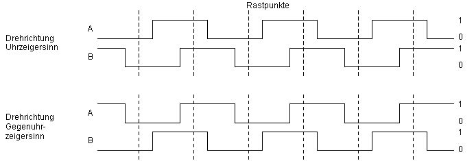 Stefan ⛄ F. schrieb:> Zwei aufeinander folgende (prellende) Take an Pin A während Pin B nicht> prellt bewirkt, dass dein Zähler einmal herauf und dann wieder runter> zählt.