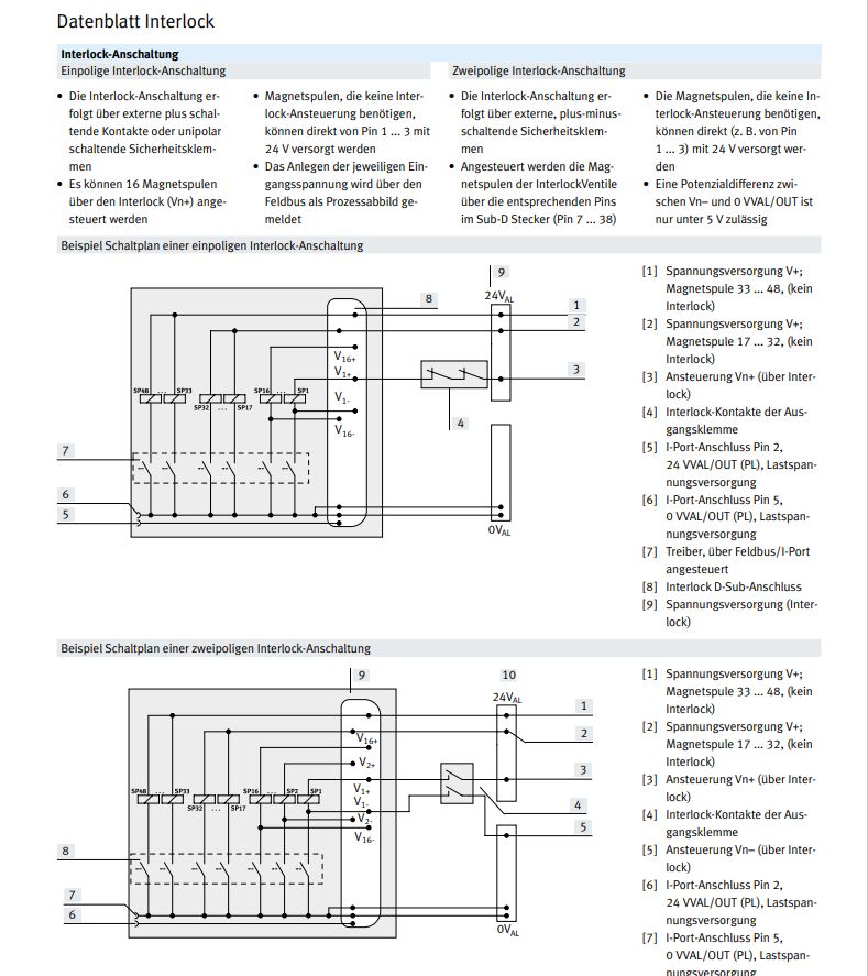 Bei Festo heißt das Ding "Ventilinsel VTUG mit Interlock" dort werden die ersten 16 Ventile an den D-Sub herausgeführt. Dort musst du die Ventile die du brauchst mit V+ und V- Brücken. Dafür bekommst du dort auch das Signal (invertiert) heraus. sg
